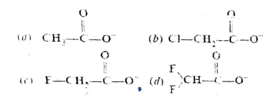 Question 02: Ionic species are stabilised by dispersal of charge. Which of the following carboxylate ion is the most stable?