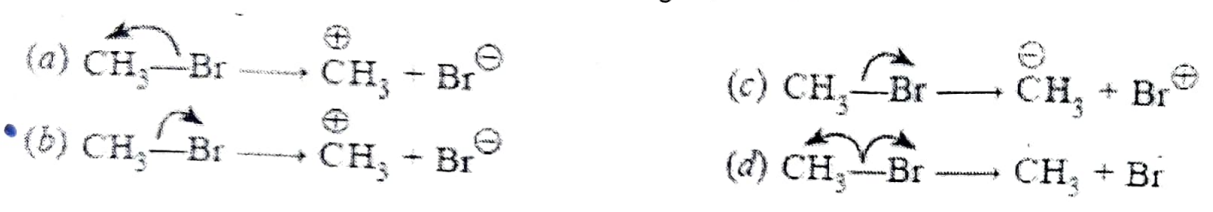 Question 09: The correct representation involving heterolytic fission of CH₃–Br is: