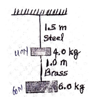 Q17. Two wires of diameter 0.25 cm, one of steel and the other of brass, are loaded as shown. Calculate the elongations of the steel and brass wires.